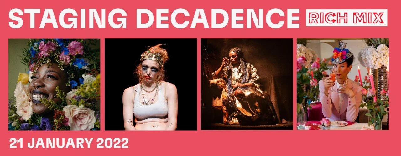 In September 2021, Staging Decadence teamed up with HERE arts centre in New York to stage a twenty-first-century salon. The night included the premiere of Nia Witherspoon’s Priestess of Twerk, inspired by sacred sex workers and ‘the “bad bitches” of hip-hop’, and Normandy Sherwood’s Psychic Self Defense, which riffed on endings and the decadence of theatrical objects. Hosted by the inimitable Murray Hill, Nia and Normandy were also joined by Dr Adam Alston and Professor Richard Kaye, who offered talks on sick theatres and the martyrdom of St. Sebastian, respectively.